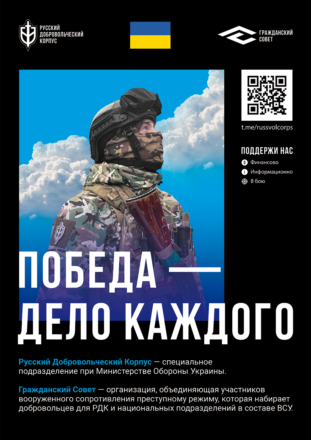 Мы, граждане России, воюющие против путинского режима за лучшее будущее для нашей родины. Обеспечим безопасность, достаток, правосудие и свободу каждому!
